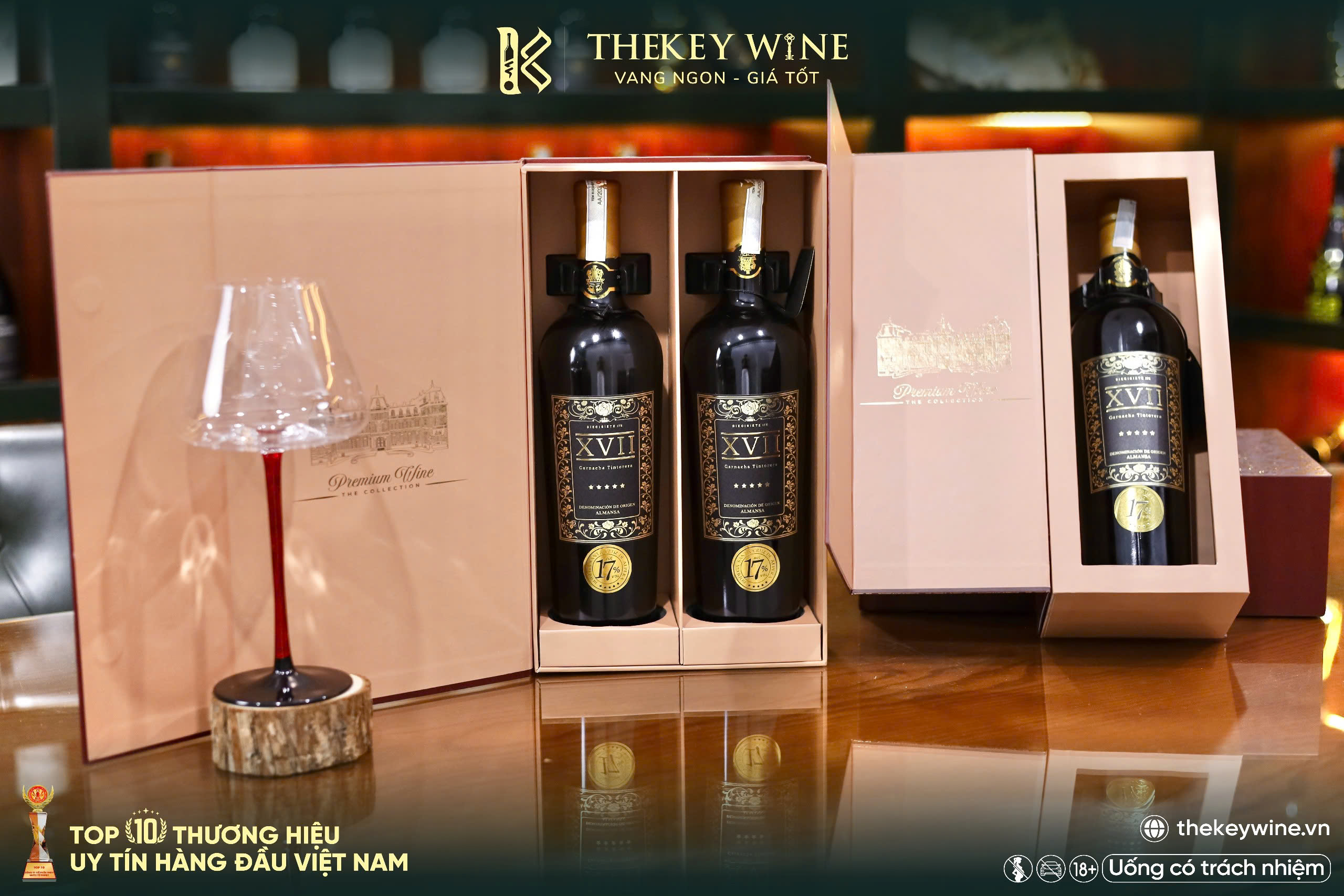 Chai vang sở hữu thiết kế sang trọng và cổ điển với nhãn chai tông đen – vàng ánh kim, nổi bật với biểu tượng XVII mạnh mẽ ở trung tâm, thể hiện đẳng cấp và sự tinh tế của một dòng vang Tây Ban Nha cao cấp. Đây là lựa chọn hoàn hảo cho các buổi tiệc sang trọng, tiếp khách hoặc làm quà biếu đẳng cấp.
