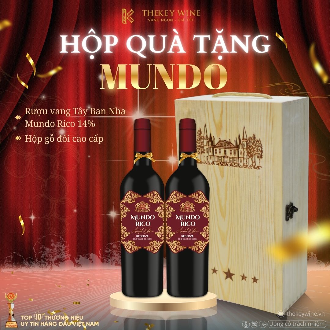 - Hộp đôi gỗ rượu vang đỏ Mundo Rico