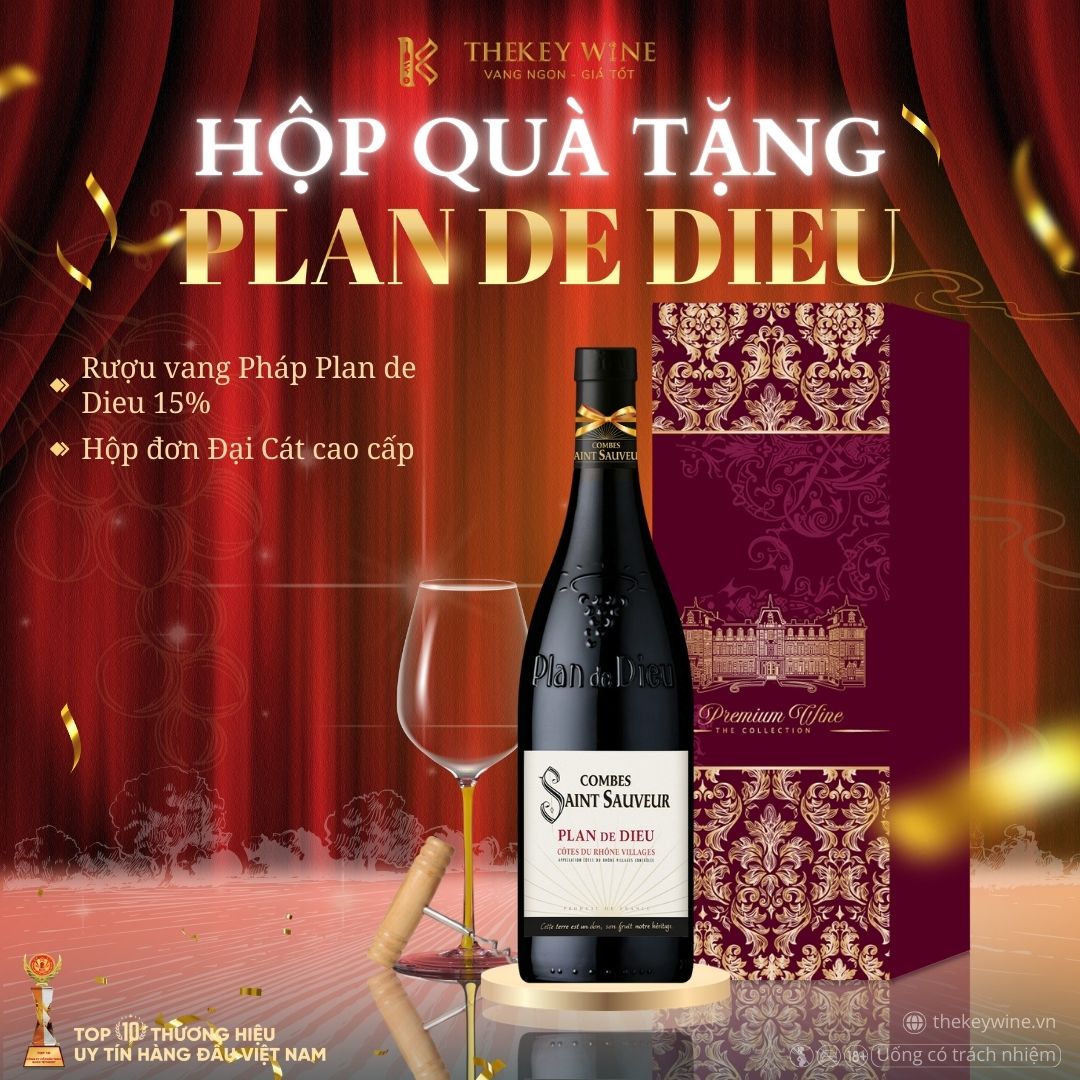 Plan de Dieu là dòng vang đỏ nổi bật đến từ vùng Rhône danh tiếng của Pháp, được sản xuất bởi nhà làm vang Combes Saint Sauveur với truyền thống lâu đời. Rượu được phối trộn từ hai giống nho nổi tiếng Grenache và Syrah, mang đến cấu trúc rượu đậm đà, cân bằng và tinh tế.