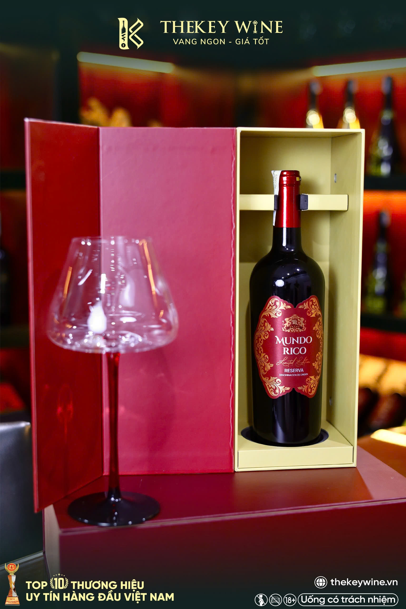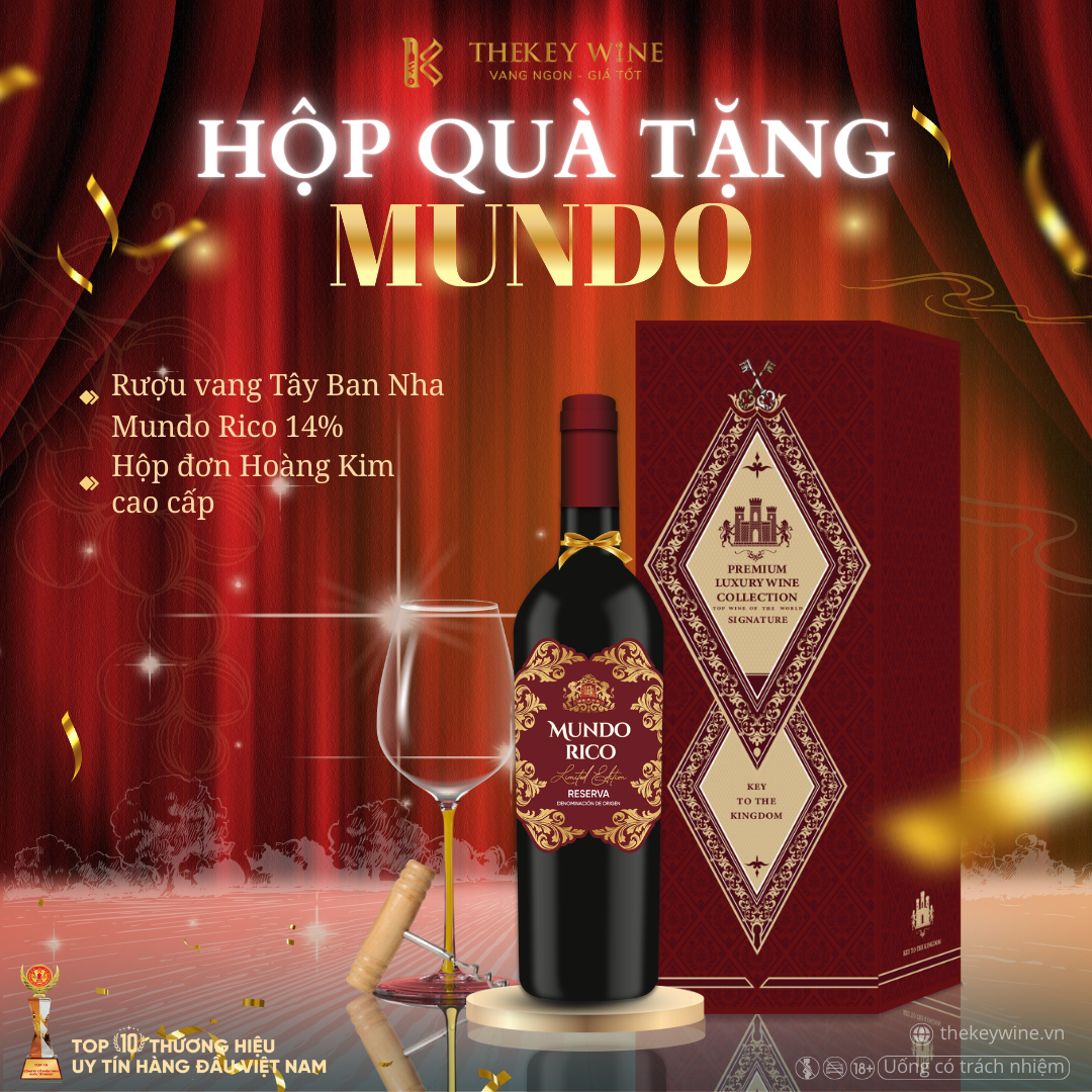 - Hộp đơn Hoàng Kim Đỏ rượu vang đỏ Mundo Rico