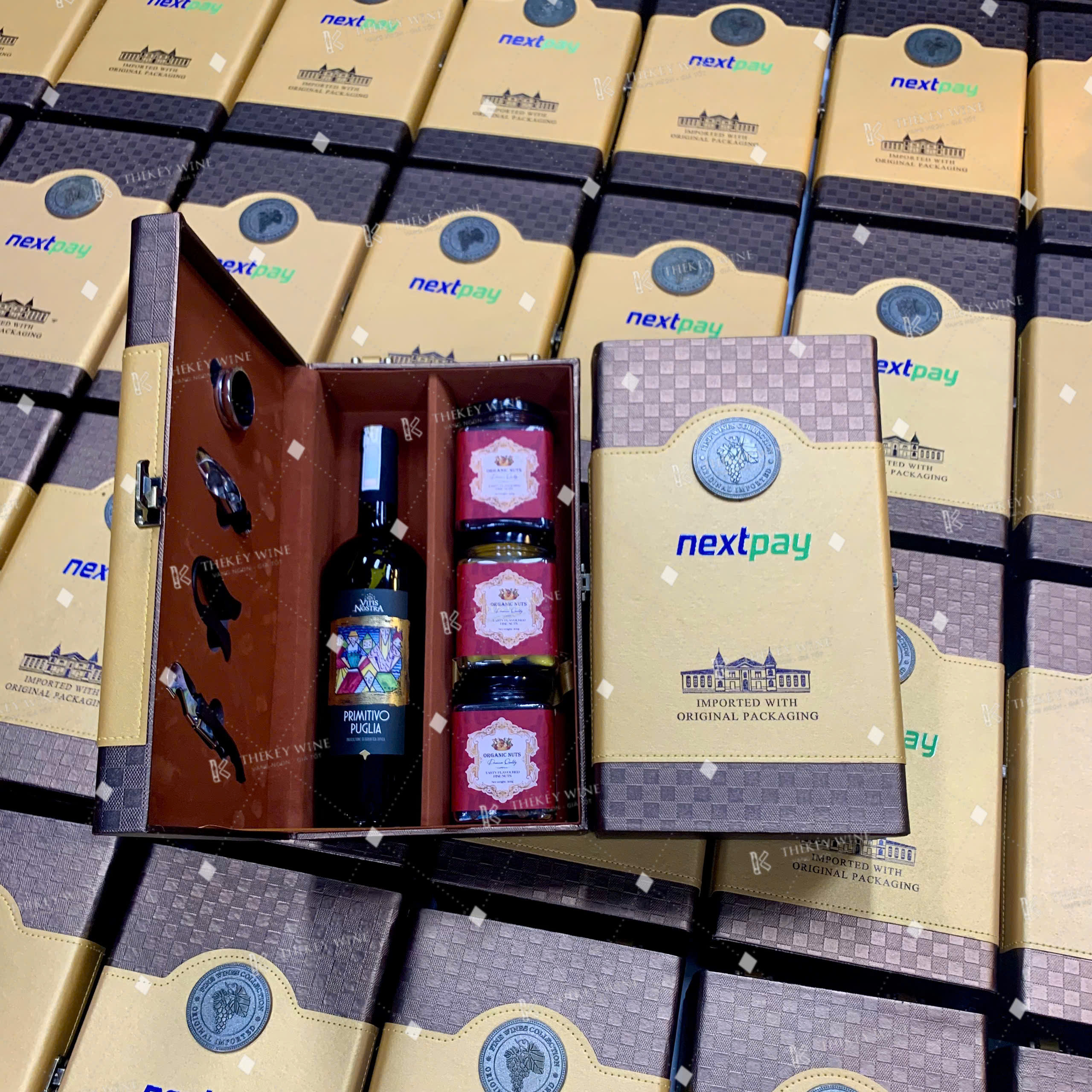 - Hộp đôi Luxury in ấn Logo thương hiệu: Mỗi set quà được TheKey Wine chế tác tỉ mỉ, hỗ trợ in ấn logo NextPay sắc nét trên bề mặt hộp da cao cấp. Đây không chỉ là bao bì, mà là một sự khẳng định về đẳng cấp và sự chỉn chu của NextPay trong việc xây dựng hình ảnh thương hiệu trong mắt đối tác.