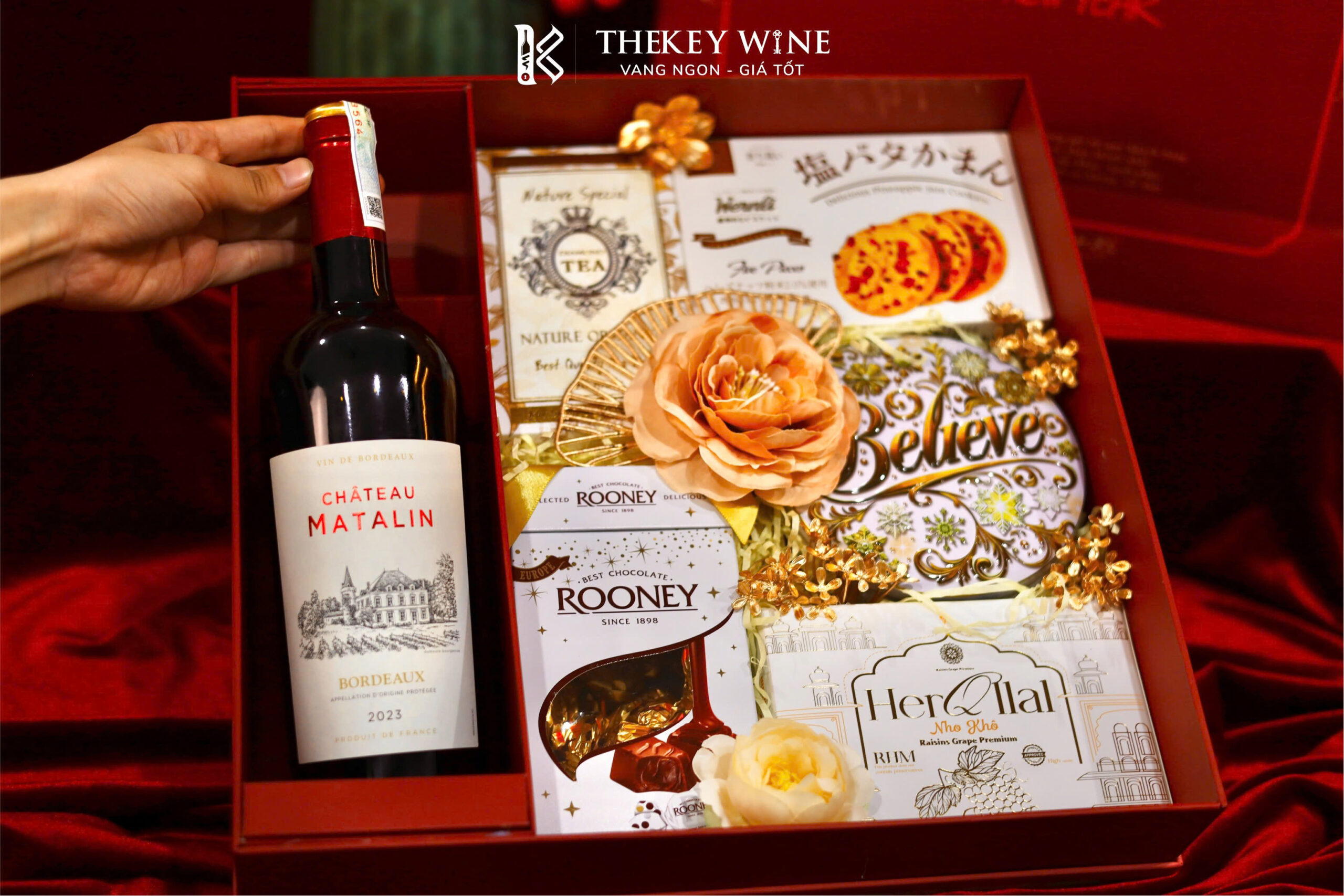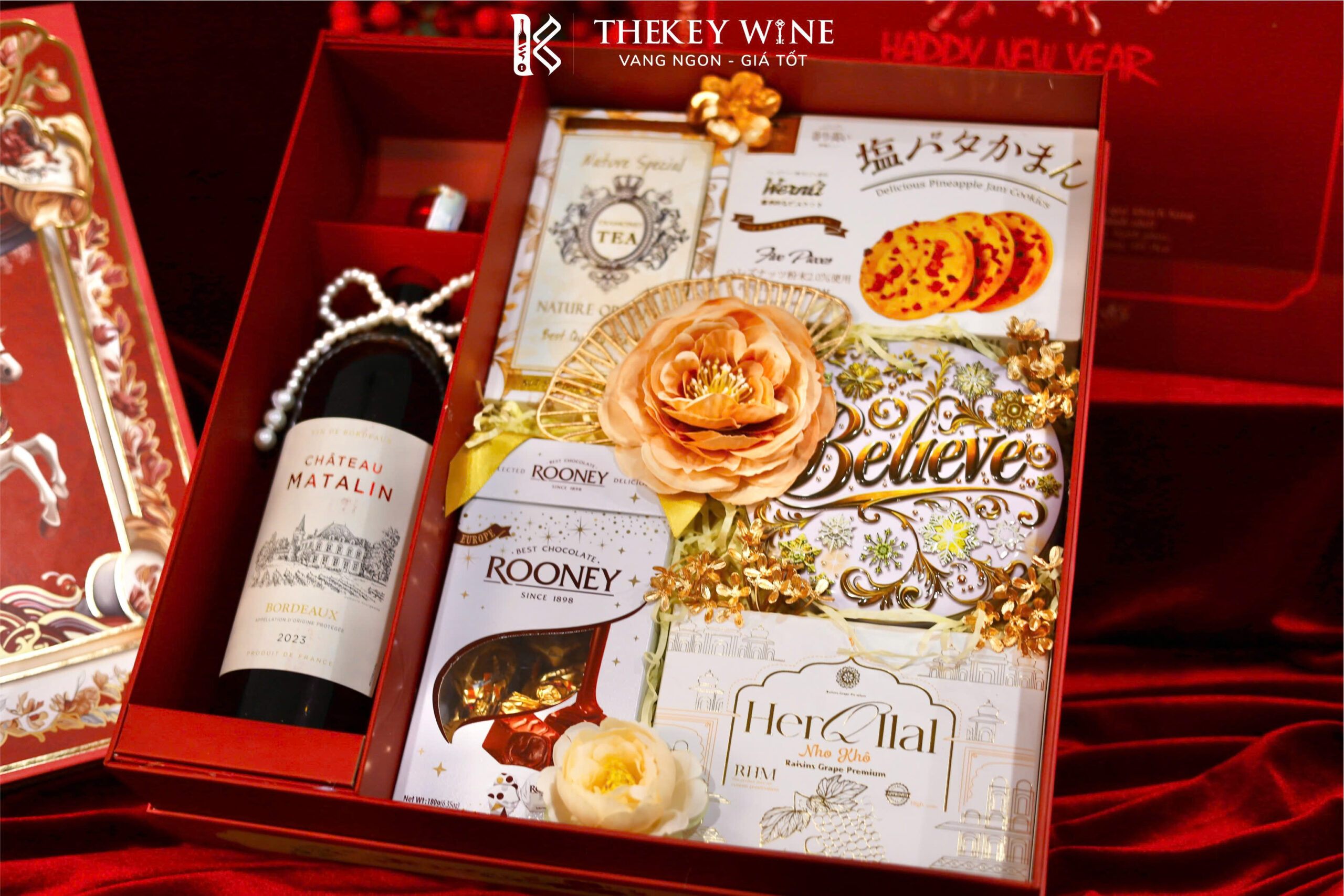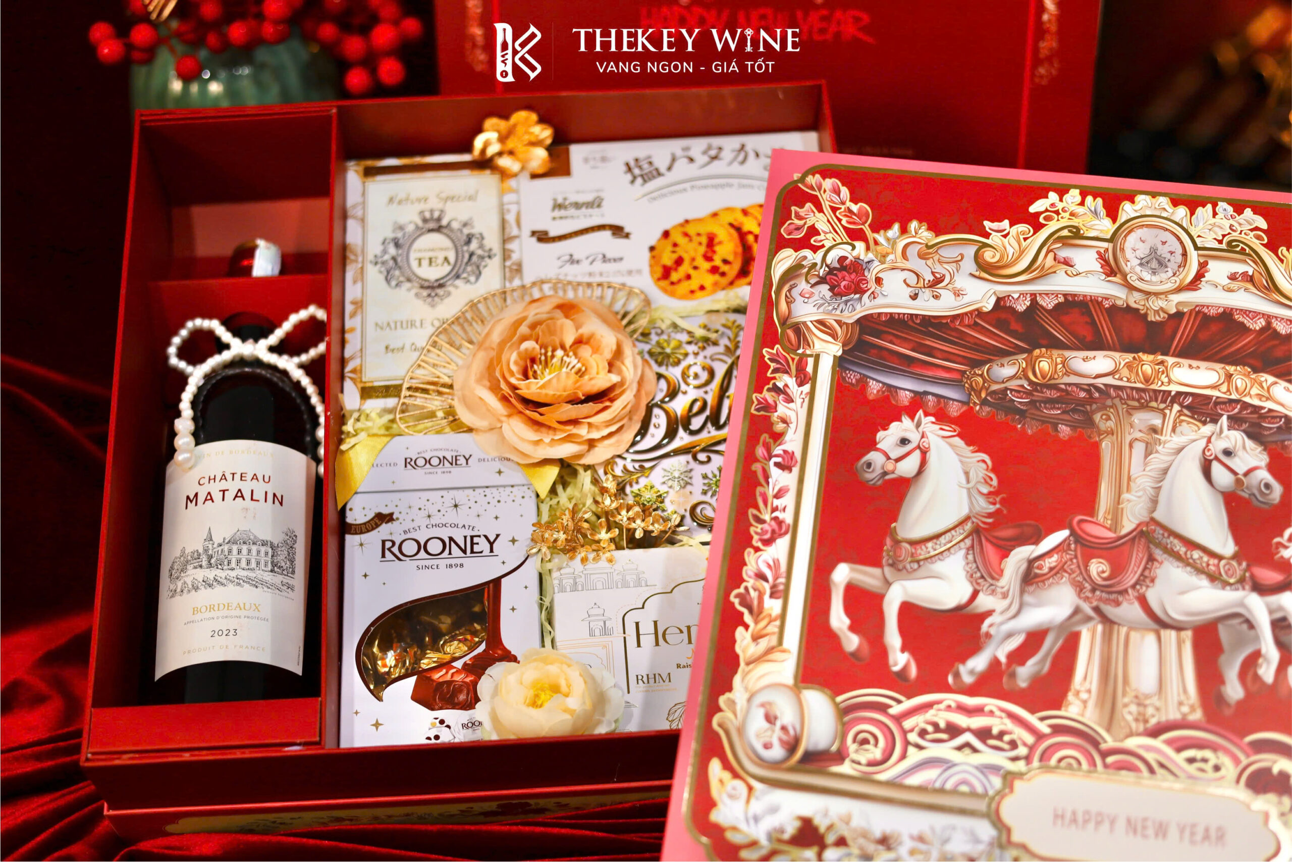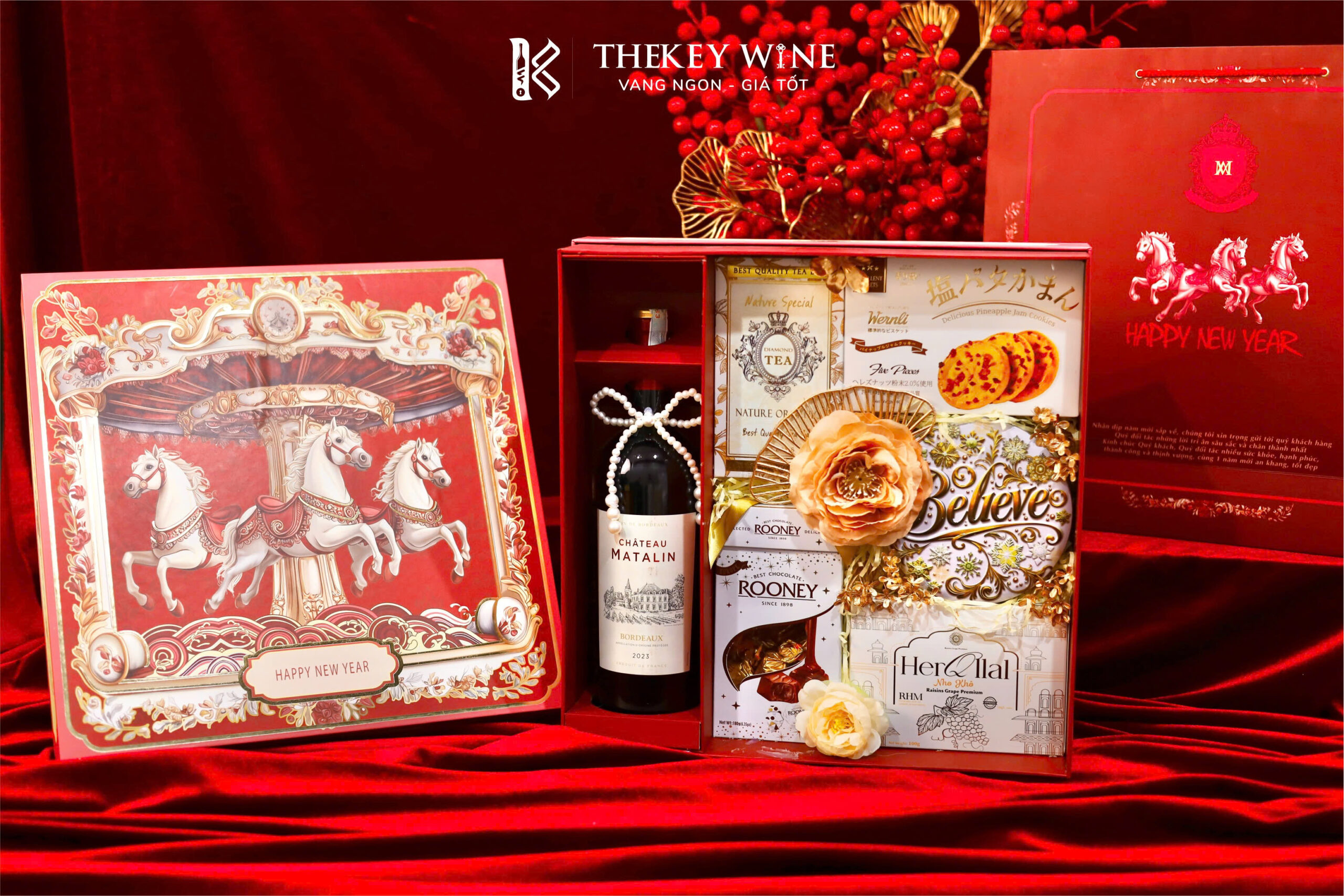 Set quà Tết Bính Ngọ Cát Tường 2 2026 mang đến sự kết hợp hài hòa giữa vang Pháp Matalin 14% và các món quà ngon miệng: chocolate, nho khô, bánh quy, trà và quy bơ. Được đóng trong hộp & túi thiết kế sang trọng, set quà như lời chúc năm mới may mắn – thịnh vượng – phát tài dành tặng đối tác & người thân.