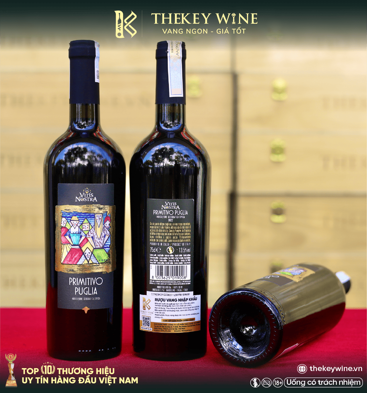 Rượu vang Vitis Nostra Primitivo Puglia là một biểu tượng của Nam Ý – đến từ vùng đất rực nắng và gió biển Puglia, được làm từ giống nho đỏ nổi tiếng Primitivo 100%. Dòng vang này nằm trong bộ sưu tập Vitis Nostra – thương hiệu của nhà sản xuất lớn Enoitalia, mang sứ mệnh tôn vinh di sản rượu vang của các vùng miền Ý. Với hương vị đậm đà của trái cây đỏ chín như anh đào, mâm xôi và các loại gia vị nhẹ nhàng, cấu trúc mềm mại và cân bằng, Vitis Nostra Primitivo là lựa chọn hoàn hảo cho người yêu vang tìm đến sự tinh tế với mức giá hấp dẫn.